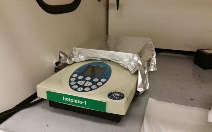 This hotplate is primarily used for PDMS processing. If you would like to use it for any purpose, please contact the primary trainer.
