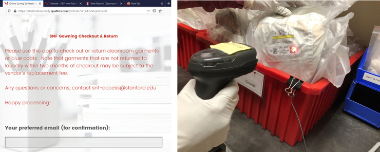 - a. Open the Garment Checkout on the Stockroom Chromebox. Note this is a Qualtrics survey (URL is posted next to the Chromebox.)
